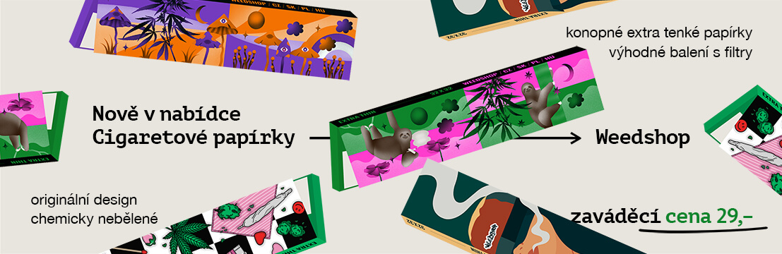 Náš obchod tzv. smokeshop nebo bongshop nabízí širokou škálu kuřáckých potřeb, skleněných a akrylových bong a veškerého příslušenství. Součástí nabídky našeho specializovaného obchodu jsou také kvalitní vaporizéry, ochucené blunty a různé druhy filtrů a papírků. Veškeré zboží máme skladem a tak můžete svou objednávku očekávat již následující den! Mezi jednu z největších novinek na našem e-shopy bezpochyby patří i CBD konopí a marihuana, která byla vyšlechtěna tak, aby neobsahovala psychoaktivní THC. Všechny CBD produkty jako oleje, daby či sladkosti s tímto kanabinoidem najdete v naší kategorii CBD. Novinkou v našem e-shopu je také bohatá nabídka konopných mastí z různých firem.