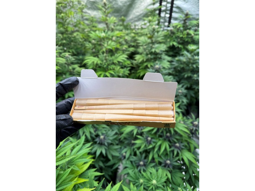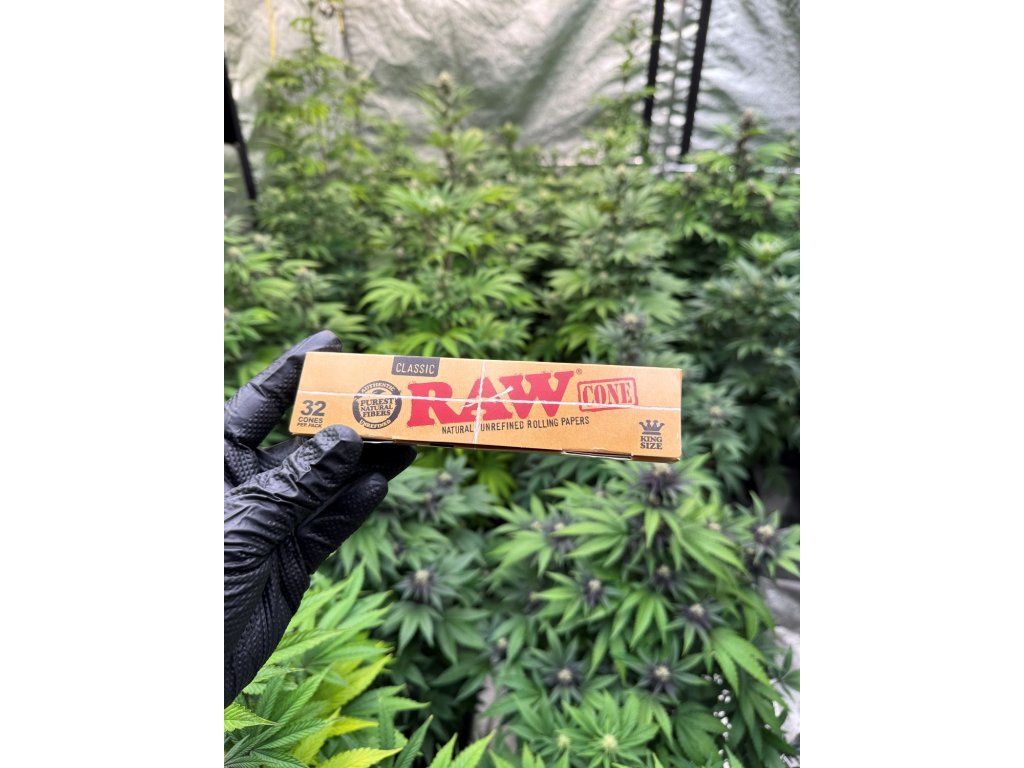 Předrolované kónické dutinky značky RAW z organicky pěstovaného konopí ve velikosti King Size. Velké balení po 32 kusech.