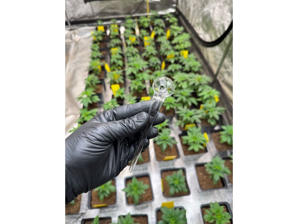 🌿Fajfka je vyrobena z odolného borosilikátového skla 🧪, které zajišťuje čistou a jemnou chuť při každém použití a odolává vysokým teplotám potřebným pro dabování 🔥. Díky své délce 10 cm se pohodlně drží v ruce a umožňuje přesné dávkování extraktu.