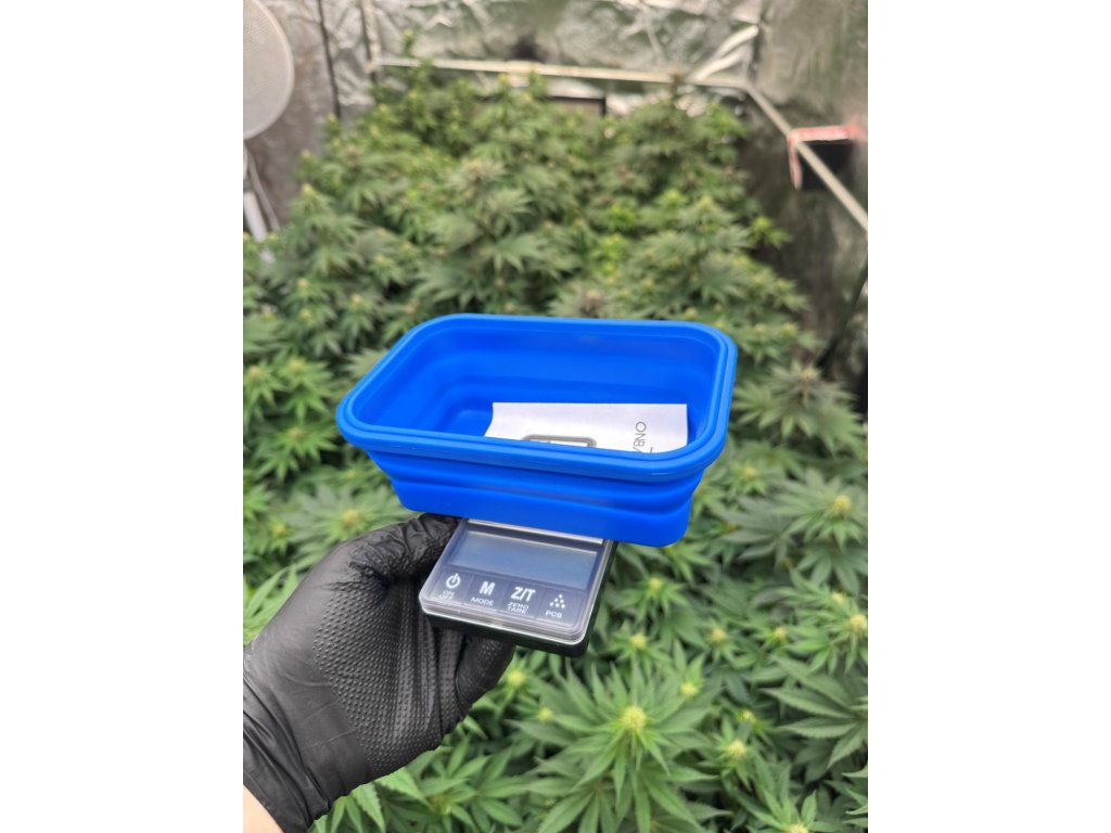 Váha je černé barvy a má velmi malou hmotnost. Silikonová nádoba jde složit a tak se nemusíte bát, že vám váha bude na cestách překážet nebo zabírat místo. Silikonová nádoba má po otevření rozměry 165 mm x 107 mm x 61 mm a pohodlně se do ní vejde až 200 gramů sušených bylinek. Váha je na dvě mikro tužkové baterie, které jsou součástí balení.