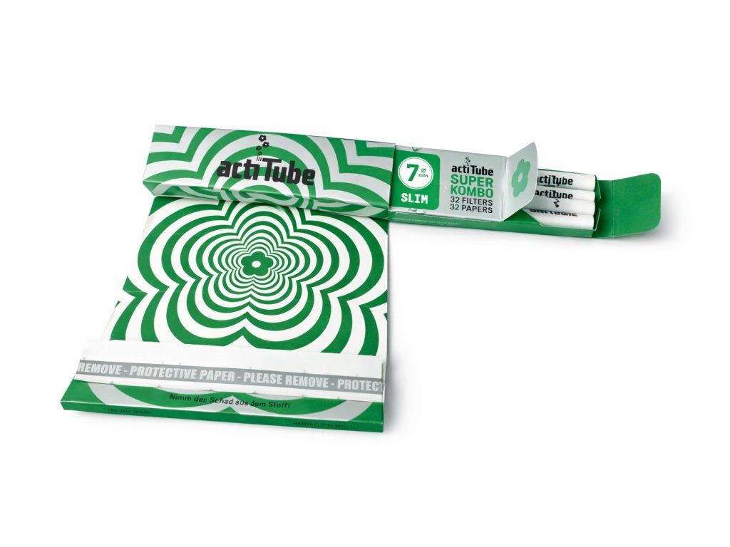ActiTube Slim Superkombo je praktický set „vše v jednom“, který obsahuje 32 extra tenkých papírků a 32 filtrů s aktivním uhlím (7 mm). Díky aktivnímu uhlí si vychutnáte plnou chuť bylinek s výrazně nižším obsahem dehtu.