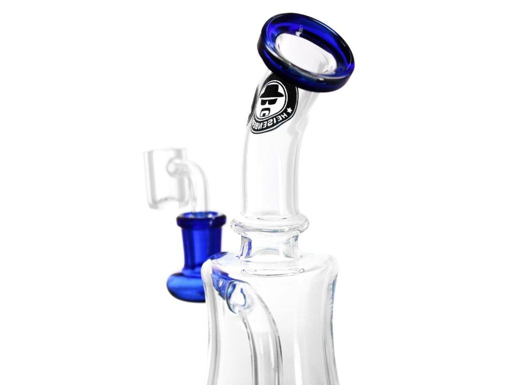 Skleněný mini bong od značky Heisenberg vysoký 19 cm s kotlem na konopné extrakty o tl. 14,5 mm.