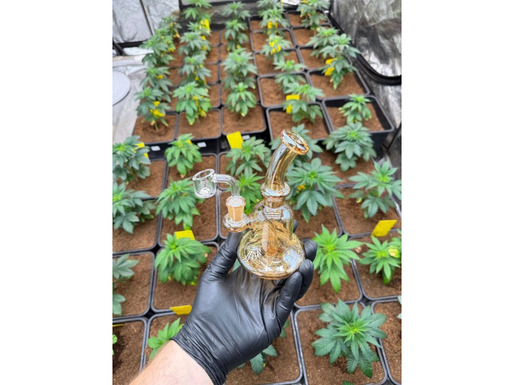 Skleněný bubbler na tekuté konopné extrakty, koncentráty, BHO a mnohé další. Bong o výšce 16 cm.
