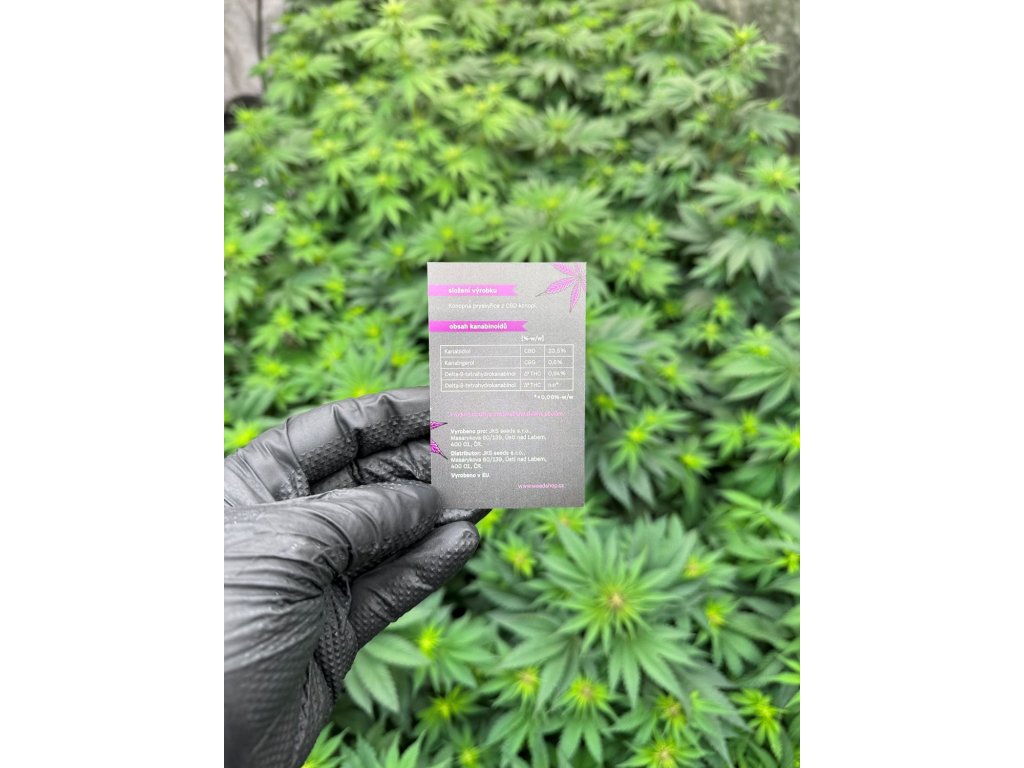 CBD hašiš můžete zakoupit v balení po 0,5 g nebo 1 gramu. Hašiš obdržíte ve znovu uzavíratelném obalu na kartičce s údaji o obsahu kanabinoidů.
