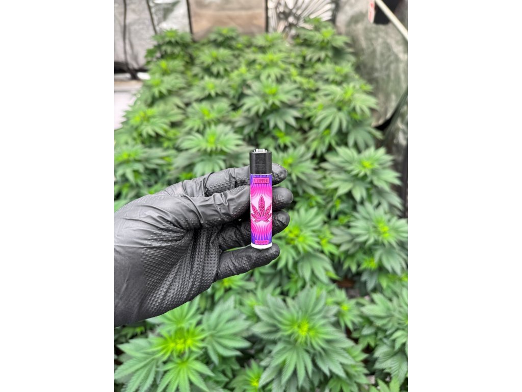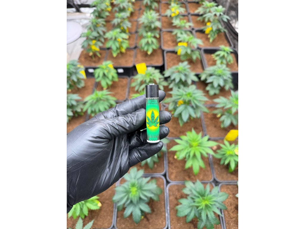 Clipper zapalovač ve velikosti Classic z edice nazvané Flash Leafs. Tato edice je specifická potiskem konopného listu, který je znázorněn v různých barevných kombinacích s pěkným tattoo motivem.