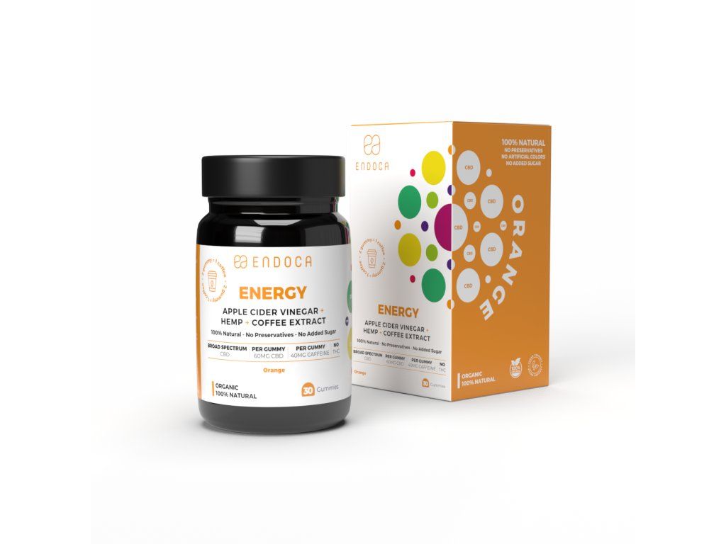Sladké gumové bonbóny s názvem "Energy" ze Skandinávské společnosti Endoca s vysokým obsahem CBD a 0 % THC. Bonbóny s názvem Energy mají pomerančovou příchuť, čistě přírodní složení a střední obsah kofeinu k lehkému povzbuzení. Každý bonbón obsahuje 60 mg konopného oleje z organicky pěstovaných rostlin s 0% obsahem THC + 40mg kofeinu pro lehké povzbuzení. Čistě přírodní zážitek doplňuje pomerančová příchuť, kterou sladkost získává z organického pomerančového extraktu. Jako konzervant je použit jablečný ocet, který nejen prodlužuje trvanlivost této sladkosti, ale navíc má také velké množství potenciálních benefitů pro naše zdraví.