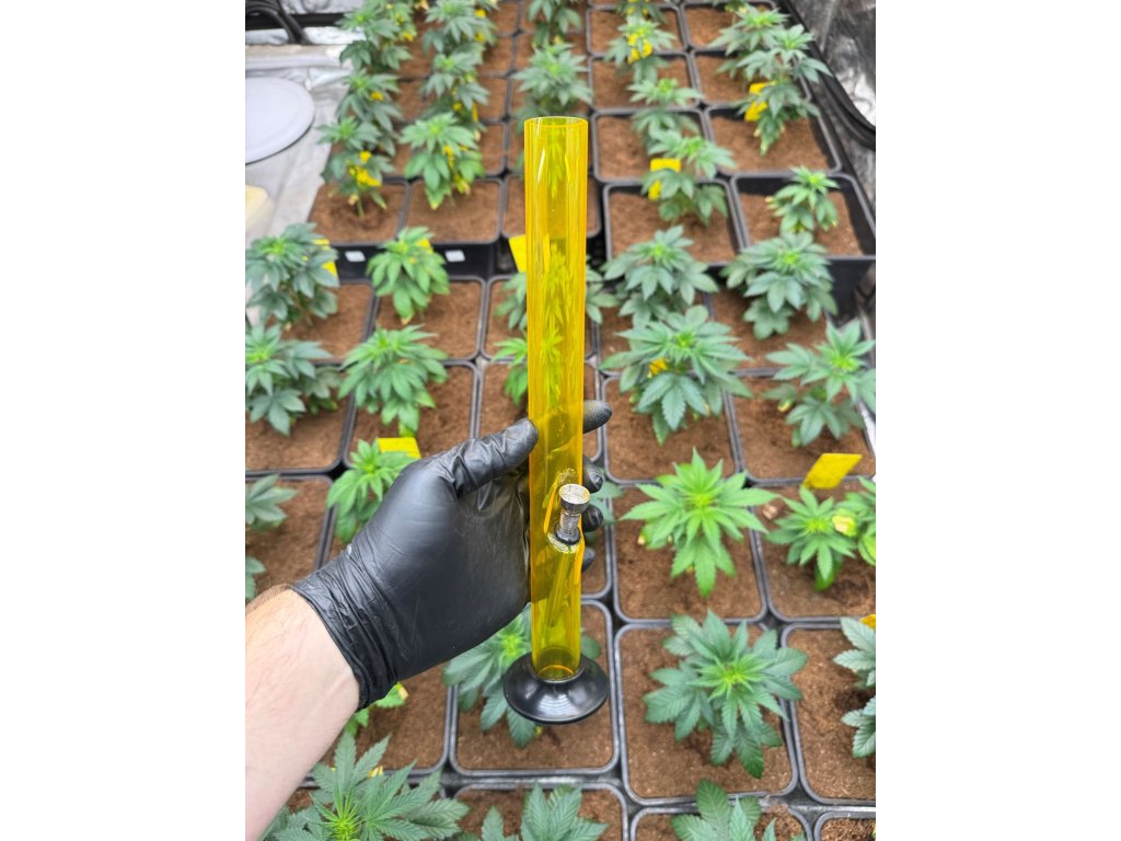 Středně velký, akrylový bong z nezávadného materiálu s rovným tvarem a výškou 32 cm. Mix barev.