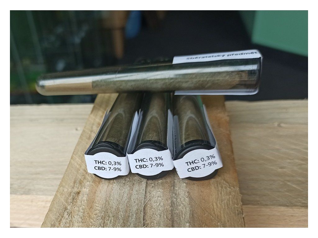 Každá konopná cigareta obsahuje přibližně 0,9–1,1 gramu marihuany s vysokým obsahem CBD. Toto konopí pochází z naší vlastní produkce, pěstované v moderních indoor pěstírnách, kde využíváme špičkové pěstební vybavení, kvalitní osvětlení a pouze organická hnojiva. Naše WeedShop pre-rolls neobsahují žádný nikotin ani jiné příměsi. Všechny sušené květy jsou baleny do jointů ručně našimi kolegy, což zaručuje čistý obsah a nejvyšší kvalitu každého pre-rollu.