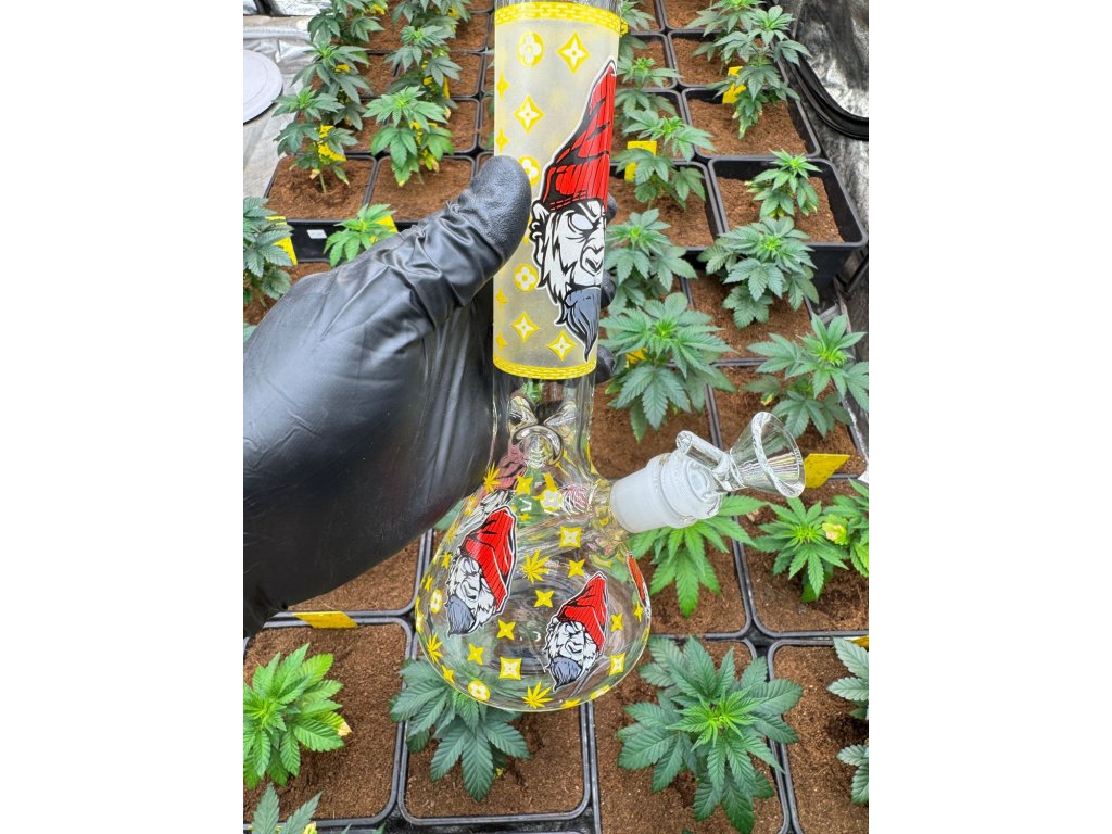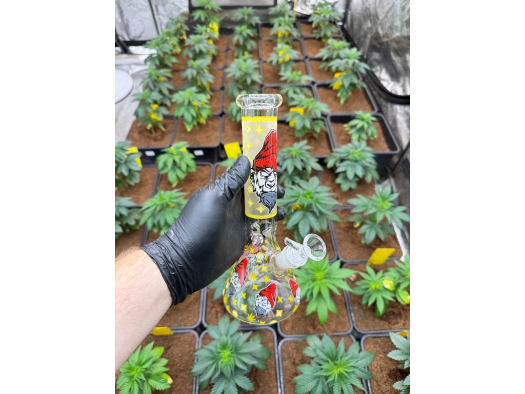 Představujeme ti skleněný Ice-bong o výšce 25 cm, který zaujme nejen svou kvalitou, ale i originálním designem. 🐵💨 Bong je vyroben z pevného a odolného skla, ozdobený motivem černé opice s červenou čepicí, doplněným o žluté hvězdy a konopné listy, díky čemuž působí hravě, ale zároveň stylově.🌟A navíc, svítí ve tmě! Je to ideální kousek pro každého, kdo hledá kompaktní a zároveň kvalitní bong pro každodenní použití.