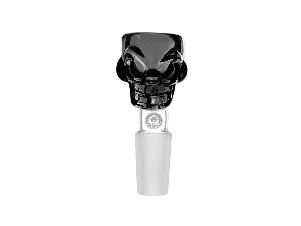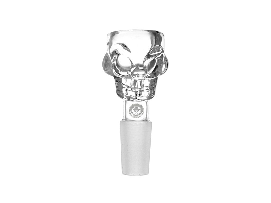 Masivní skleněný kotel ve tvaru lebky pro skleněné bongy se zábrusem 14,5 mm.