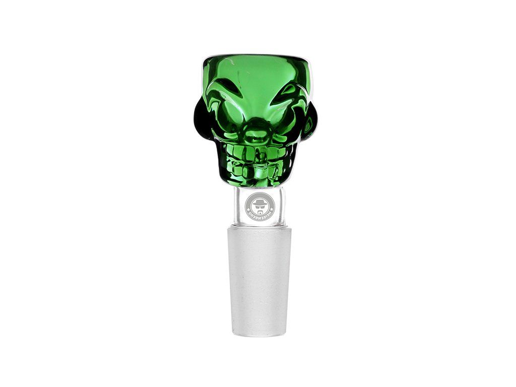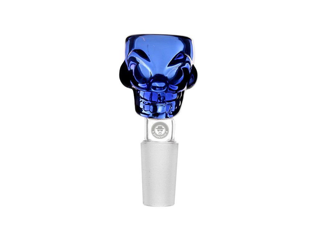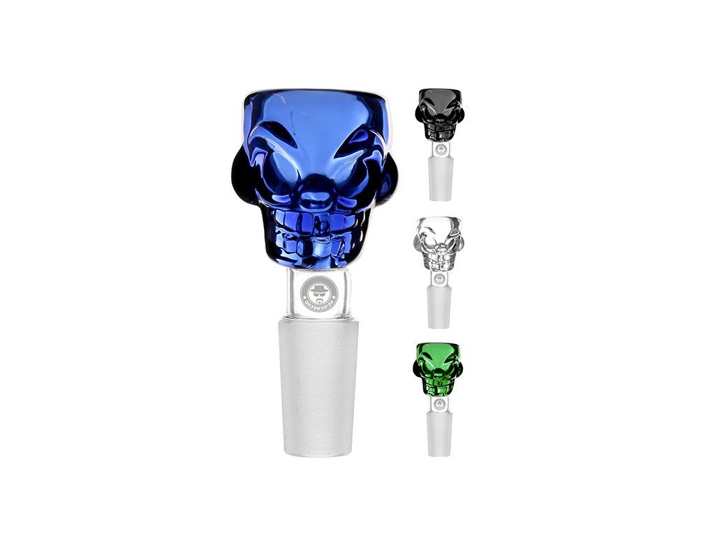 Skleněný Kotlík Lebka v různých barvách se zábrusem tl. 14,5 mm. Skvělý doplněk pro váš skleněný bong nebo jako skvělá možnost pro všechny kdo hledají velký masivní kotel.