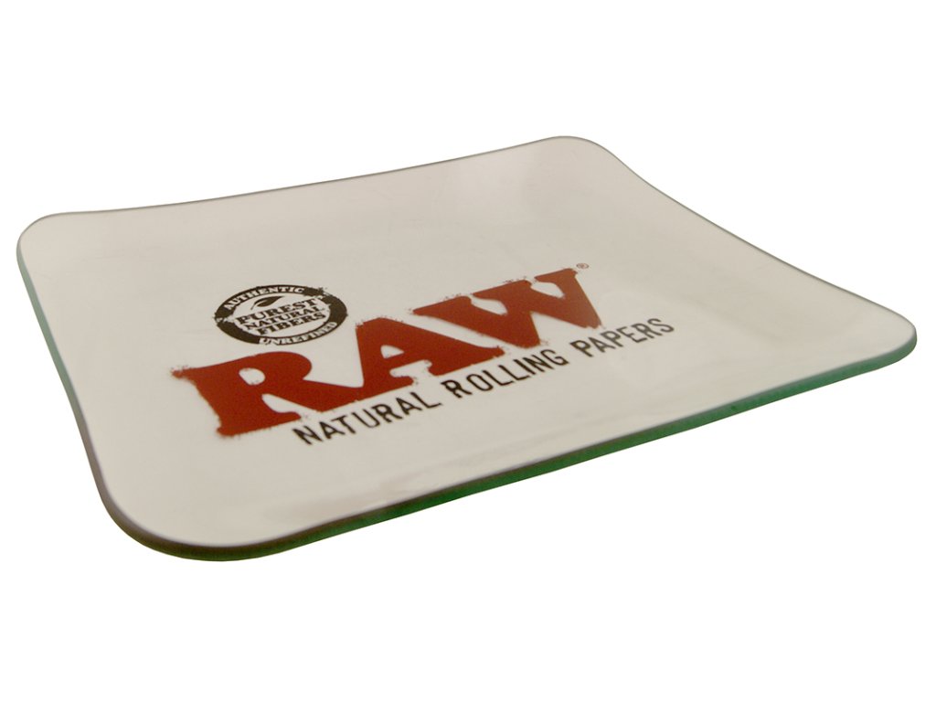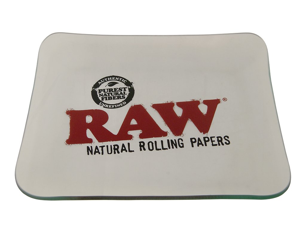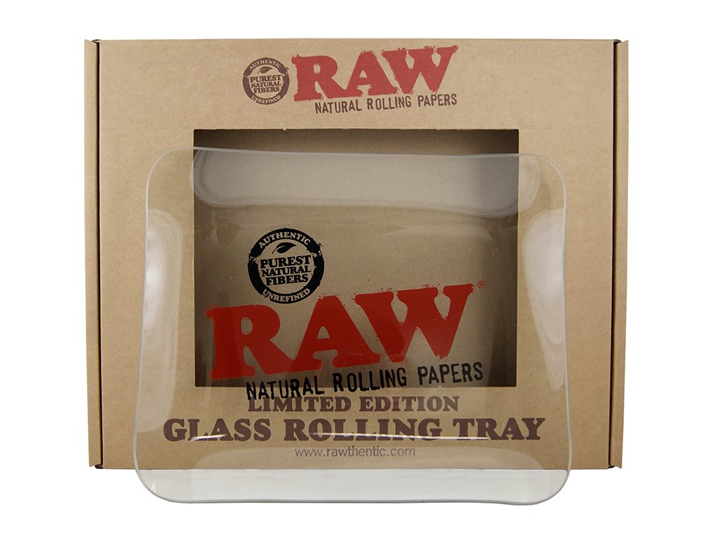 Skleněný podklad na balení legálních bylinek značky RAW ve velikosti mini.